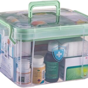 1-Pack Clear Storage Box Container,Family First Aid Box Medicine Box Organizer Plastic Medicine Storage Kit,First Aid Storage Box with Handles,...